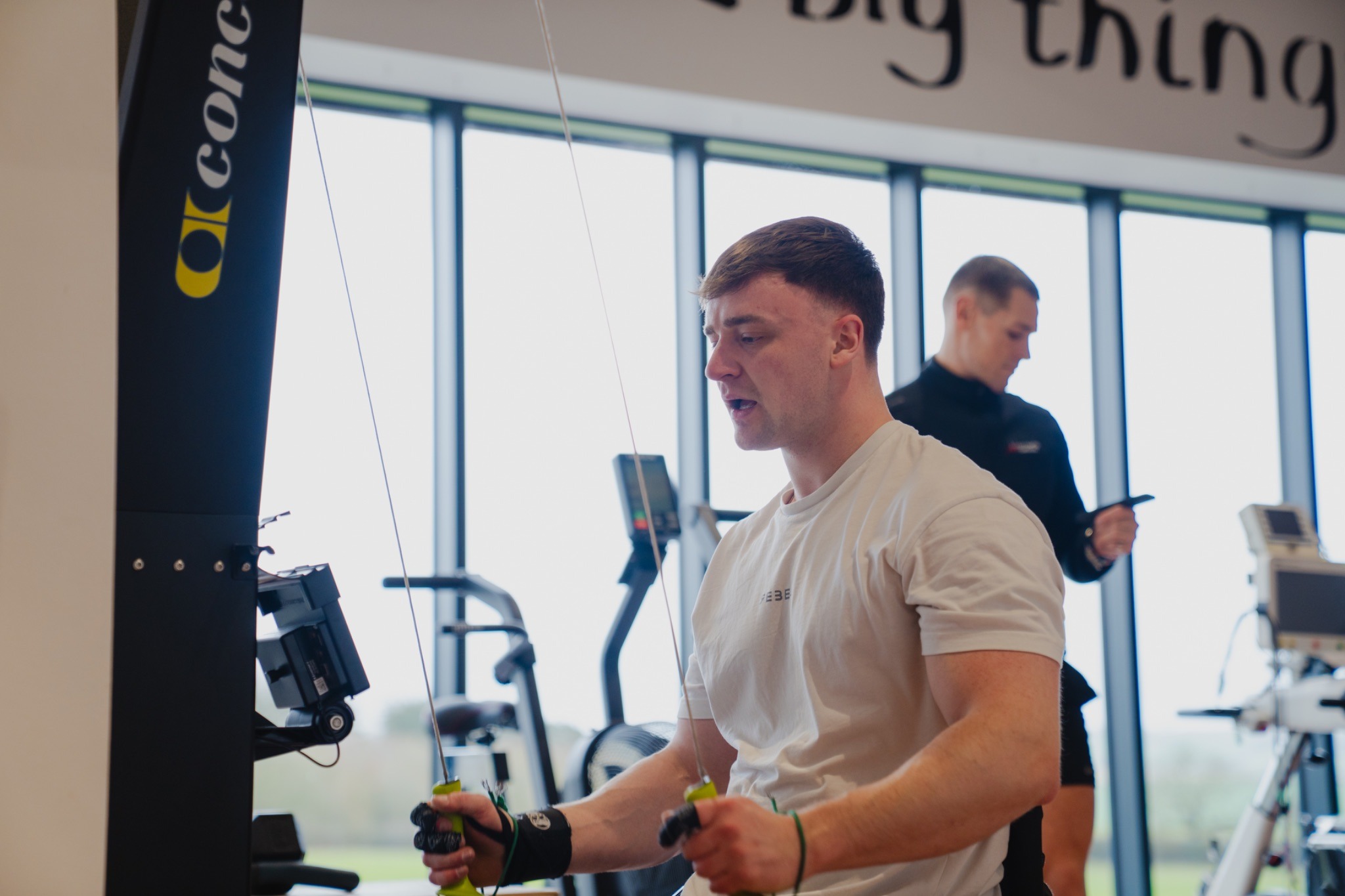 "I don’t always come up to the centre, I tend to come once a week, but with work and busy schedules I train at another gym," Jacob says. "So it’s nice to be able to have George program a workout, I don’t have to think about it. I can just turn up to the gym, record my scores, work out and give feedback to him and he can then send Messages and give me tips and advice over my phone."